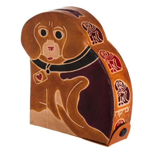 Puppy Dog Tzedakah Charity Box Pushka Hand Made of Colorful Tooled Leather