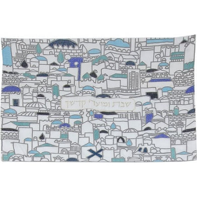 Jerusalem Design Challah Cover Blue Silver Embroidery on Bamboo Eco Friendly Fabric by Hadarya, Israel