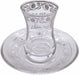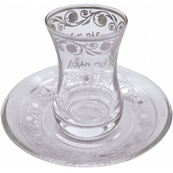 Contemporary Glass Kiddush Cup / Becher with Tray Silver Pomegranates Design