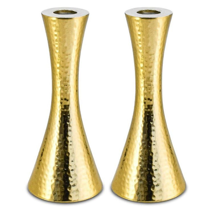 Modern Hammered Gold Tone Finish Shabbat Candlesticks 7" Candleholders Set of 2