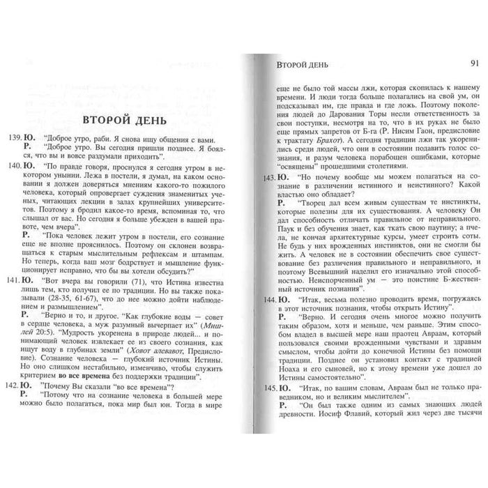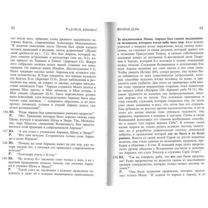 Поскольку эта книга построена в форме беседы, предметы обсуждения часто не имеют строгих границ, и по ходу ответа на вопросы Юноши может возникнуть новая тема. В ходе диалога даются ответы также и на вопросы, которые не были поставлены прямо, и встречаются параллели, которые не отмечены специально. Название этой книги объясняется в заключительном, 896 параграфе, и, несмотря на свое название, эта книга предназначена для думающих евреев всех возрастов. Некоторые идеи и высказывания в этой книге могут вызвать возражения, которые автор готов обсудить, если к нему обратятся с вопросом. Однако повторное прочтение и обращение к ссылкам обычно помогают прояснить суть дела. Максимум удовольствия получит от этой книги тот читатель, который будет перечитывать ее много раз: и подряд, и в течение ряда лет.