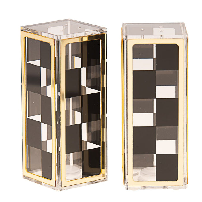 Salt and Pepper Shakers Chess Design Black & Clear Lucite with Gold