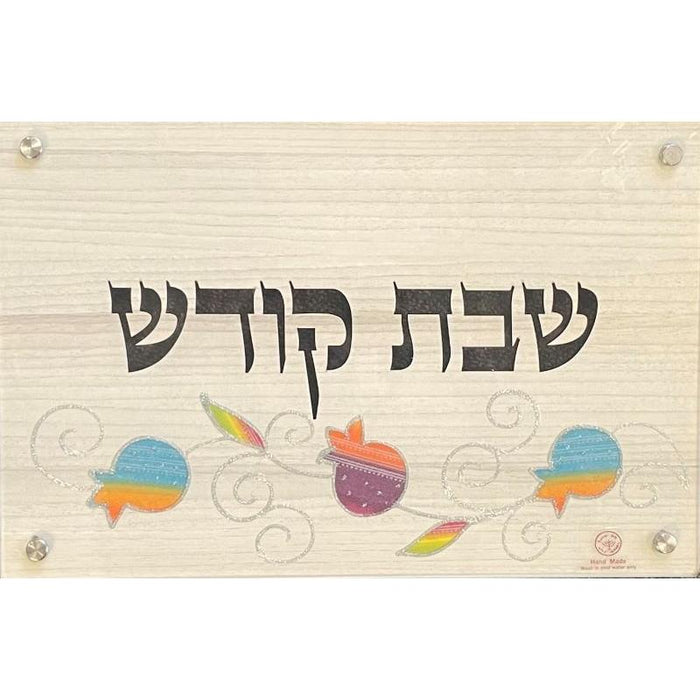 Shabbat Challah Tray Board Decoupage Pomegranate Bouquet Wood Laser Cut with Glass cover