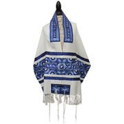Emanuel Tallis Cotton With Silk Embroidery With Bag & Kippah - 20" x 75" Blue Symbols Full Embroidery