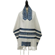 Embroidered Tallit Tallis Set Blue Floral 20" x 75" Made in Israel By Emanuel
