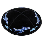 Childrens Kippah Aleph Bet Airplanes Hand Painted Suede Yarmulke