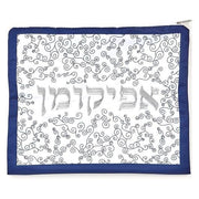 Elegant White & Blue Embroidered "White Curlicues" Afikoman Bag