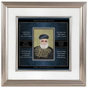 Custom Framed Rav Ovadia Yosef Picture with Home Blessing Dark Blue Floral Design 20"x 20"