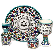 Armenian Floral Ceramic Havdalah Set in Teal Hand Made in Israel