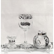 Floral Design Decoupage Art Glass & Crystals Havdalah Set of 4 Made in Israel By Lily Art
