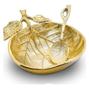 Gold Plated Apple Shape Leaf Honey Dish & Spoon