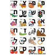 Hebrew Letters in Pictures Stickers. The Hebrew Alef Bet illustrated in pictures. Use at home, school, classroom, synagogue, and Jewish Center. Made in Israel. Contains: 240 Stickers in Pack. Sticker size: about 0.9" square.