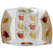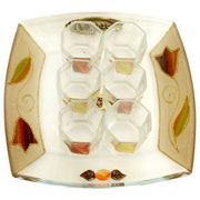 Lily Art Glass Kiddush Liquor Set of 6 & Tray Design may vary 3 colors available