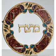 Laser Cut Wooden Matzah Tray With Decorative Stone Chips Hand Made in Israel