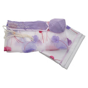 Designer Organza Pink and Purple Floral Tallit Prayer Shawl set of 3 Made in Israel By Galilee Silks