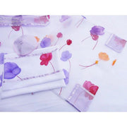 The blessing is embroidered in Hebrew on the Atara, the neckpiece of the Tallit, and the corners are enhanced with purple Shiffon.In each corner we add & tie tzitzit. Like other Galilee Silks Tallit for Women, Feminine Tallit, it comes in a set with a matching Tallit bag and kippah. The light, festive floral design is repeated on the Tallit bag, The kuppah has a color that matches the set as well.