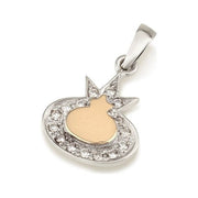 925 Sterling Silver & 9K Gold CZ Stones Pomegranat Pendant Chain Necklace Made in Israel
