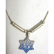 925 Sterling Silver / Blue / White Crystals Star of David Necklace 17"