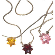 925 Sterling Silver Colored Crystal Star of David Necklace 18" Available in Pink, Granate, Topaz