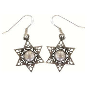 925 Sterling Silver Earrings Star of David With Pearls