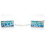 925 Sterling Silver / Enamel Tallit Clips Gil - "Blessing on Tzitzit" Made in Israel by Nadav