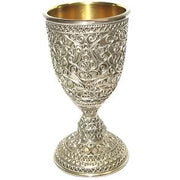 Sterling ritual wine cup handcrafted in the distinctive, delicate Yemenite style by the renowned Israeli silversmith