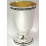 This hand crafted 925 sterling silver kiddush cup is decorated with rows of filigree