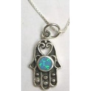 925 Sterling Silver / Opal Crystals Hamsa Pendant with Venetian Chain