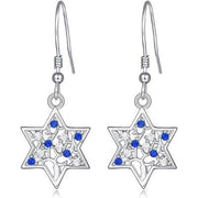 925 Sterling Silver Tree of Life Star of David Earrings Swarovski CZ in Blue White