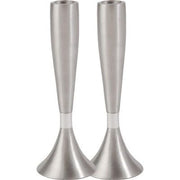 Anodized Brushed Aluminum Shabbat Silver Candlesticks 6.5" By Emanuel