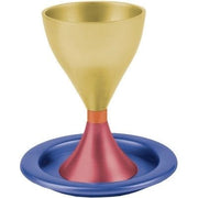 Anodized Gold, Maroon, Purple Aluminum Kiddush Cup Goblet & Blue Tray Designed in Israel by Emanuel