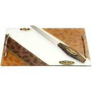 Art Glass Shabbat Tray Pewter Decoration "Gold Leaves" Hand Made in Israel by Lily ART