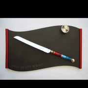 Artistic Challah Board "Waves - Red" With Rainbow Knife (Optional) Made by Caesarea Arts, Israel