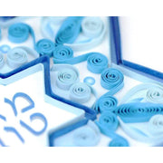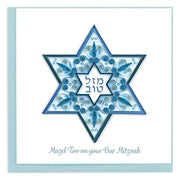 A Bar Mitzvah is a special occasion in a young mans life, wish him the best with the Bar Mitzvah greeting card. This beautiful quilled card contains a stylized quiled blue and white star of David, with Hebrew letters inside the star that read Mazel Tov in Hebrew. Underneath the card it reads, Mazel tov on your Bar Mitzvah