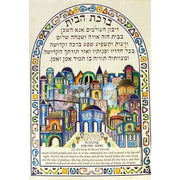 Birkat HaBayit Jewish Home Blessing Hebrew English Framed Original Art Print by AGAM Made in Israel