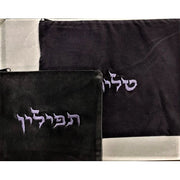 Embroidered Black Velvet Tallit Talis and Tefillin Bags Set Made in Israel Available in 2 colors