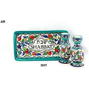 Ceramic Shabbat Candlesticks with Tray Armenian Design Made in Israel