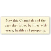 Folded ivory card (fold at top) featuring artwork by Robert Dov Tennenbaum depicting dreidels. Sold in sets of 10 cards and blank envelopes.