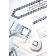 Classic Designer Tallit Wool Light Blue & Gray Stripes Embroidered Atarah Size 60 - Set of 3
