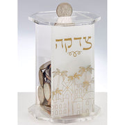 Clear Acrylic Tzedakah Box with Jerusalem Design