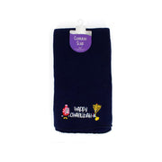 Colorful Embroidery Menorah and Dreidel Chanukah Scarf in Grey or Navy Soft Acrylic Yarn