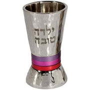 Contemporary Design Hammered Yalda Tova Small Kiddush Cup Red Rings Made by Emanuel