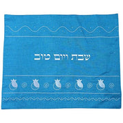 Designer Blue Satin Silver Embroidered Challah Cover Pomegranates Made in Israel by Lily Art