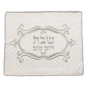 Elegant Brocade Silver Embroidery Shabbat Challah Cover 22"x18"