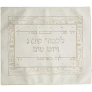 - Faux White Leather Silver Embroidery Shabbat Challah Cover Jerusalem Hand Made in Israel by Rikmat Elimelech