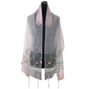 Floral Embroidery Light Rose Grey Tones Silk Tallit Tallis Prayer Shawl Set Hand Made By Ronit Gur