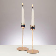 Gold Tone Finish / Enameled Aluminum Shabbat Candlesticks Candle Holders