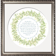 The Home Blessing Garland Framed Art Print by Mickie Caspi is a beautiful addition to any home. It is a wonderful gift -or- stunning artwork for your own home. In this art print, Mickie has created a modern home blessing filled with ferns and delicate flowers. It comes matted, framed and ready to hang.