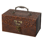 Oriental Design Faux Leather Esrog Etrog Box Metal Handle & Lock
