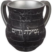 KOTEL Sculptured Black Netilat Yadaim Washing cup Silver Handles 5.5" Polyresin